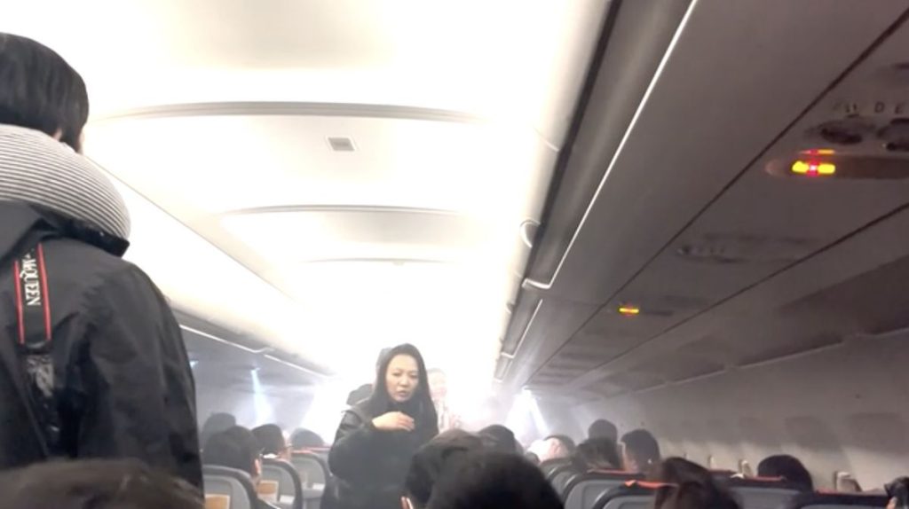 Asap memenuhi ruang kabin, saat power bank terbakar di kabin bagasi pesawat (ist)